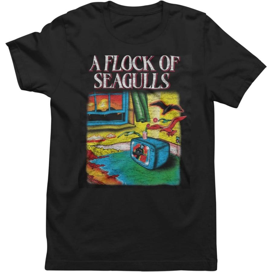 2Bhip A Flock of Seagulls Band T Shirt I Ran Tour Front & Back Print Adult Black Short Sleeve 80s Music Tees cm black