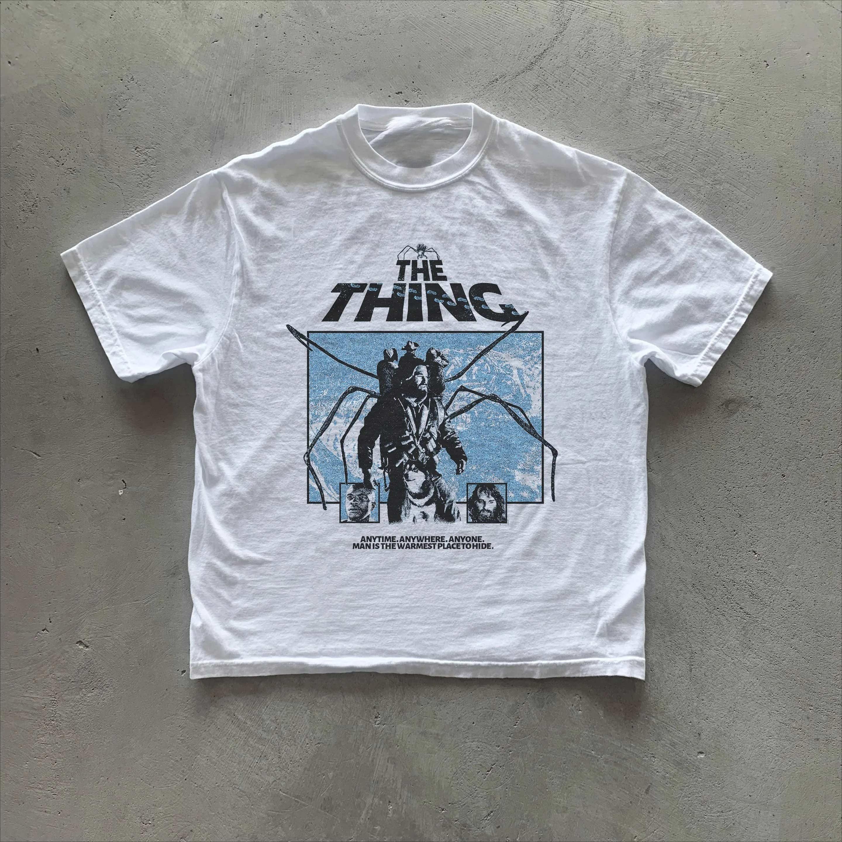 Retro 80er Horrorfilm T-Shirt Retro Japanisches Poster Grafik-T-Shirt mit The Thing Sci-Fi Film Merch John Carpenter Herren Damen Oberteil cm