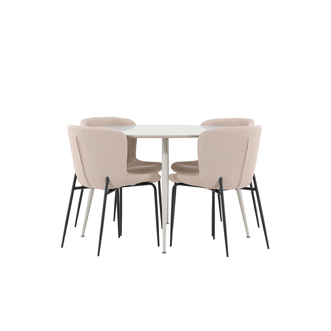Essgruppe HELA "Ariana, Esstisch mit 6 Stühlen, ausziehbarer Küchentisch", beige (weiß, bezug waterfree schlamm, schlamm, schwarz), Einlegeplatte, Bezug Webstoff waterfree, Sitzmöbel-Sets, Essgruppe, Tisch 120-160cm, 6 Stühle mit hoher Belastbarkeit, Tops