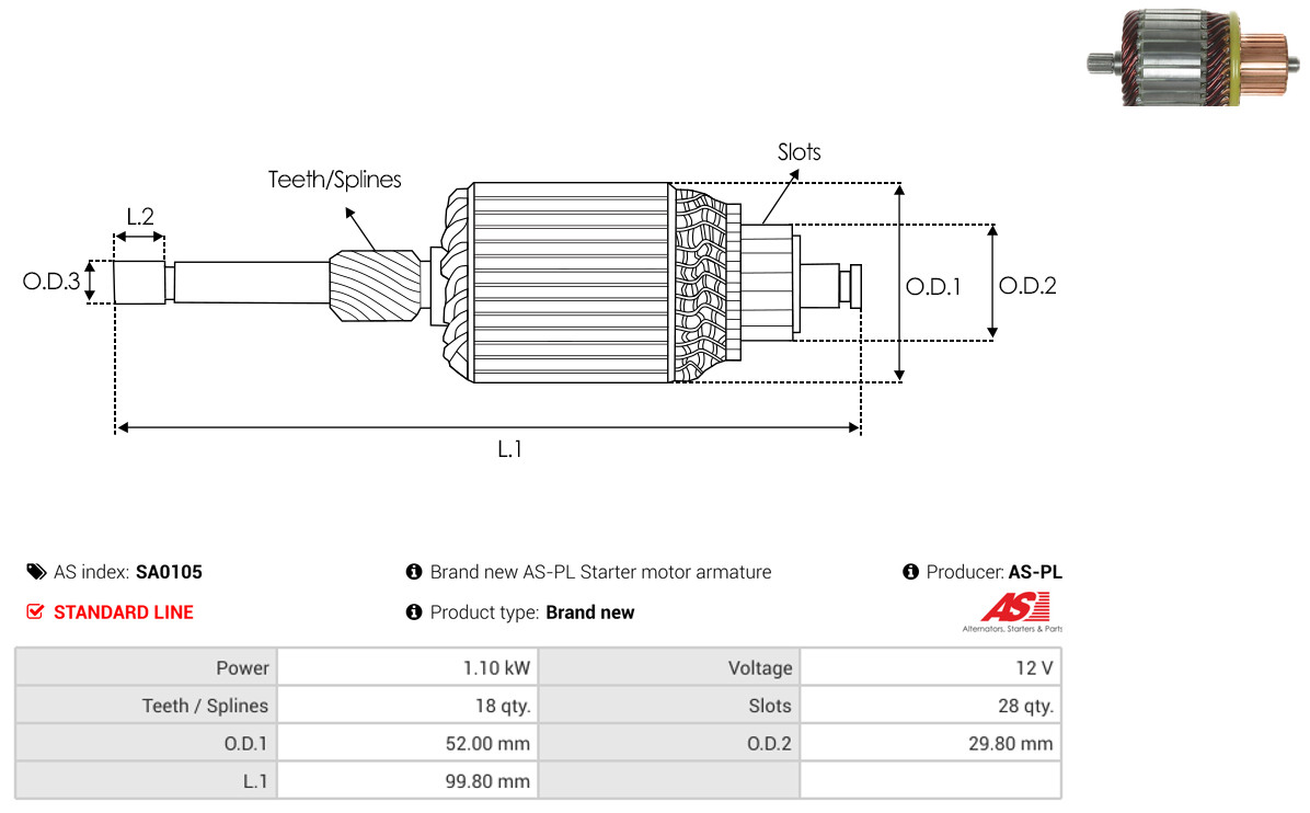 AS-PL Anker, Starter SA0105 Universal 12V 52,00mm für VW 03G911311F