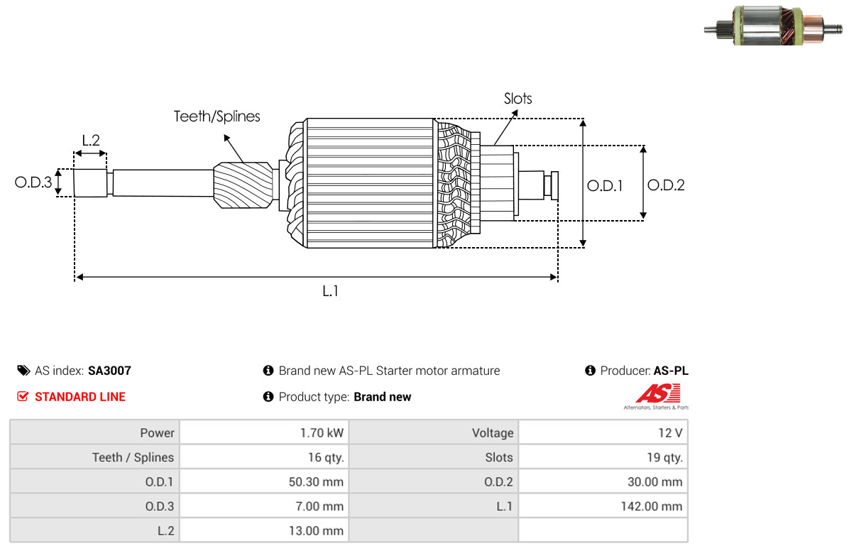 AS-PL Anker, Starter SA3007 Universal 12V 50,30mm für RENAULT CITROËN (DF-PSA) VW 068911311Q 7701041247 5821D9