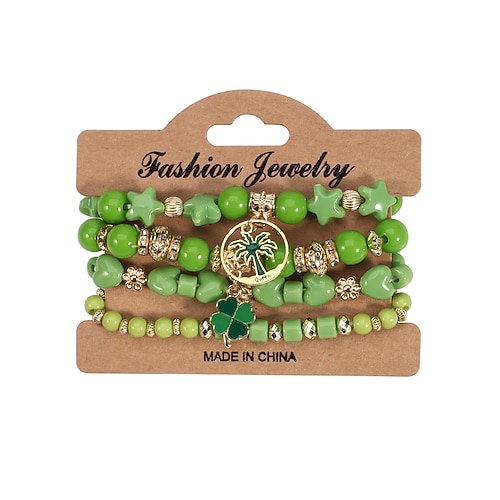 set di braccialetti da donna per il giorno di San Patrizio, braccialetti impilabili con perline verdi multifilo, stili portafortuna a forma di trifoglio, materiali in lega e cristallo sintetico, gioielli da festa irlandesi per donna