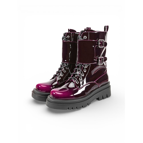stivali da combattimento da donna in vernice verde con fibbia e suola spessa, stivali audaci per il giorno di San Patrizio, adatti a festival, sfilate, stile casual da strada e avventure all'aria aperta