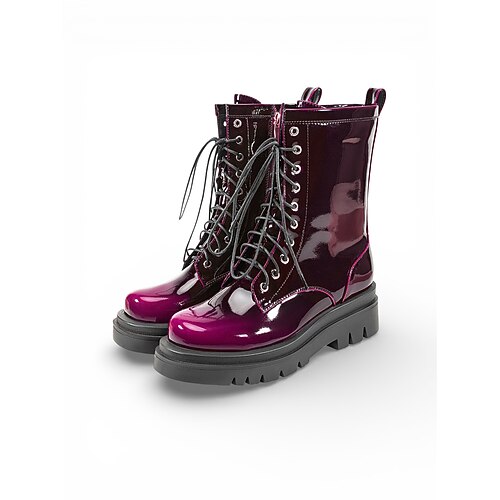 stivali da combattimento da donna in vernice verde con suola spessa e design con lacci, stivali audaci per il giorno di San Patrizio per festival, sfilate, abbigliamento outdoor e stile casual da strada