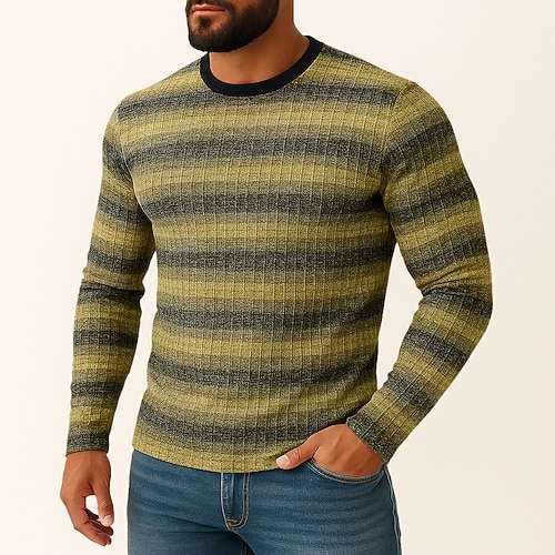 Per uomo Canotta Muscolare Maglietta a Maglia a Coste Maglietta Camicia a Maniche Lunghe Manica Lunga Girocollo Estate Tutte le stagioni Strisce orizzontali Quotidiano Casual Stile da Strada A coste