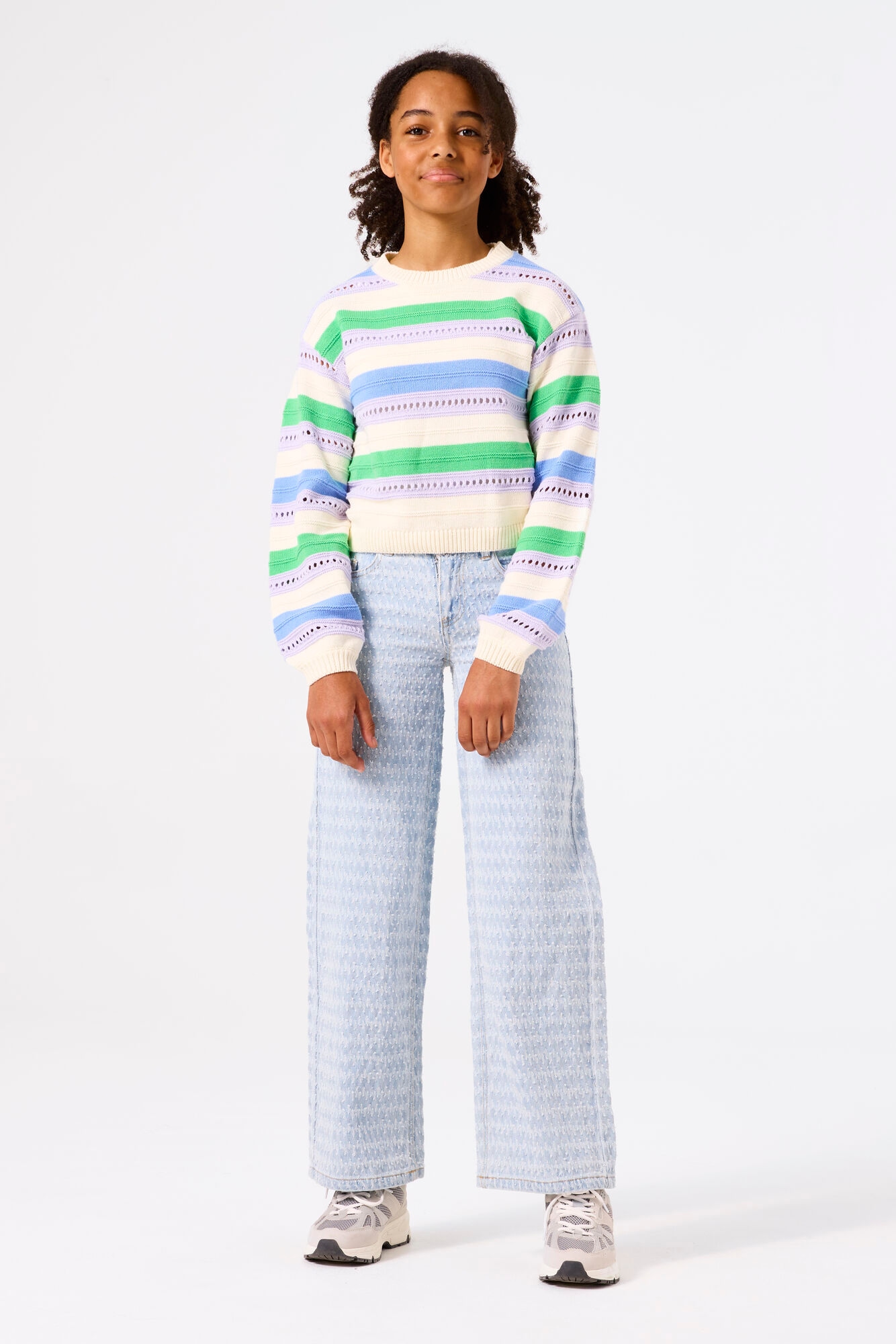 Weite Jeans GARCIA, Mädchen, Gr. 164, N-Gr, blau (light used), Denim/Jeans, Obermaterial: 100% Baumwolle, Strukturmuster, casual, weit knöchellang, Jeans, mit Strukturmuster