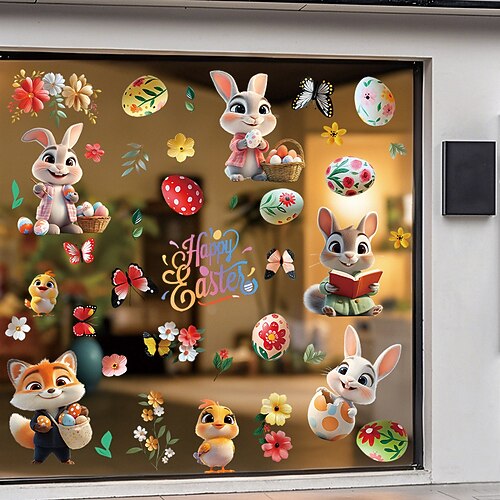 9 fogli di adesivi murali pasquali per finestre, decorazioni natalizie per vetrine a forma di coniglietto motociclista pasquale, simpatici conigli e uova, adesivi elettrostatici per finestre