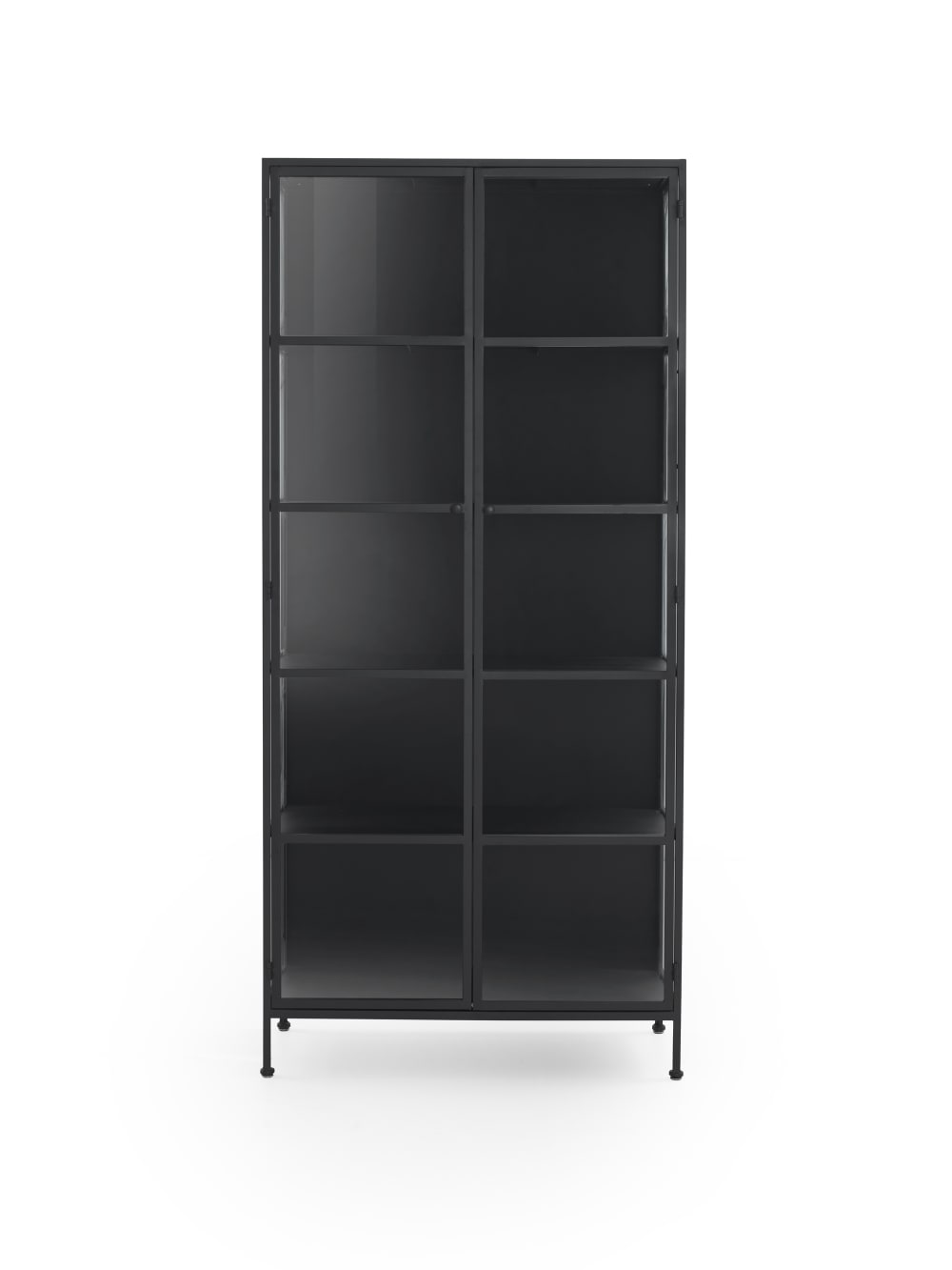 Vetrina alta con ante e fianchi in vetro struttura in metallo nero