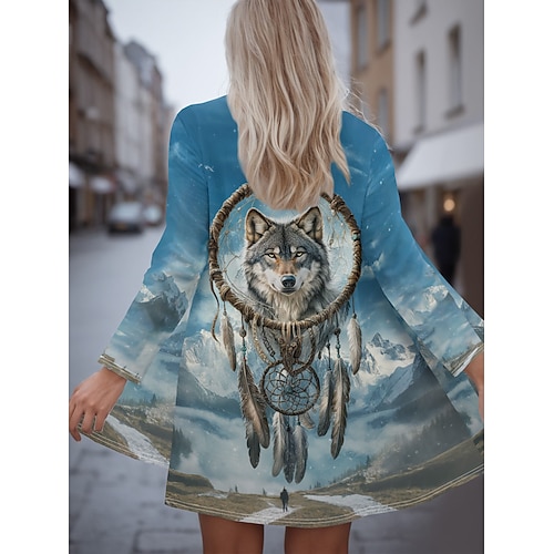 Per donna Cappotto Invernale Trench Leggero Confortevole Stampato Aperturaanteriore Vintage Moda Casual Boho Vintage Animale Vacanza Casuale Regolare Lungo Senza colletto Vestibilità regolare Manica
