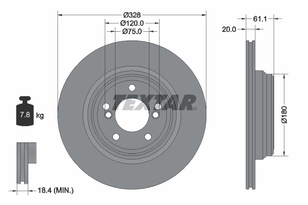 TEXTAR Bremsscheibe PRO+ 92211305 hinten rechts links außenbelüftet 328mm für BMW 34212229379 2229379