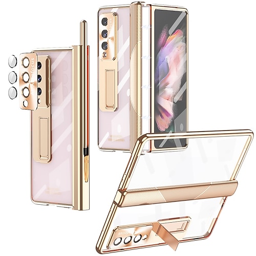 telefono Custodia Per Samsung Galaxy Piegatura a Z 7 Z Fold 5 Z Fold 4 Z Fold 3 Custodia Integrale con Proteggi Schermo Cavalletto con S Pen Trasparente PC Metallo
