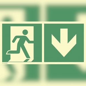 Notausgang rechts Pfeil unten, Kombi, ISO 7010,PVC-U selbstkl.,160-mcd,297x148mm