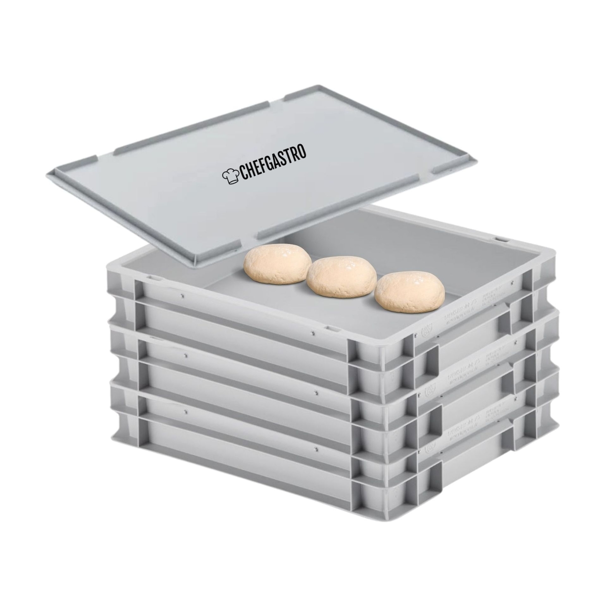 CHEFGASTRO Mega Deal 3x Pizzateigbehälter mit 1x Deckel | HxBxT 8,5x30x40cm | 9 Liter | Stapelbare Pizzaballenbox Pizzaballenbehälter Pizzateigbox