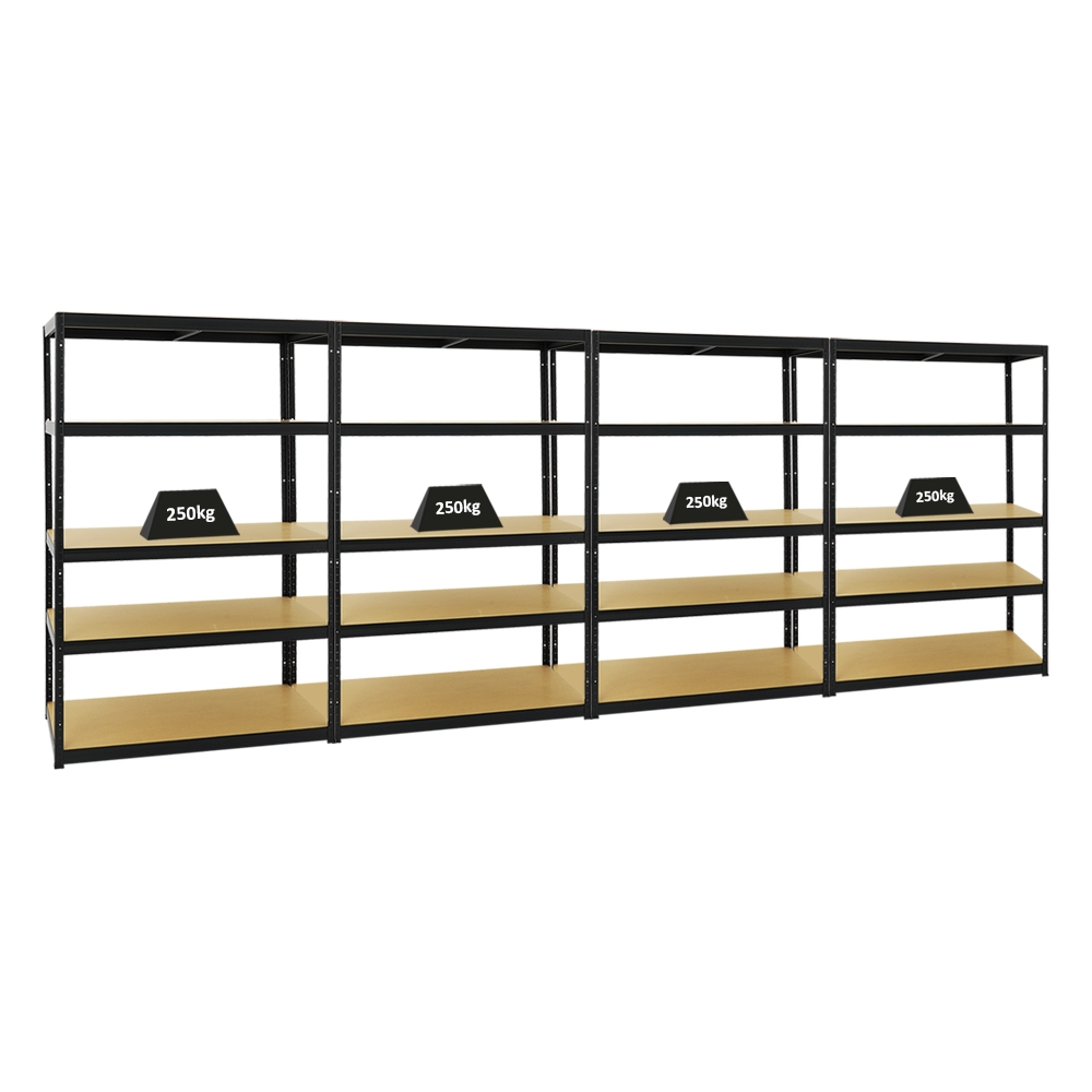 PROREGAL Mega Deal | 4x Schwerlastregal Big Elephant M | HxBxT 180x120x60 cm | Fachlast 250kg | Schwarz | Stecksystem Lagerregal Regalsystem 4 Stk.