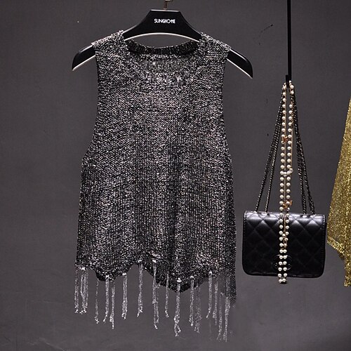 Per donna Blusa Top traforato Canotta a canotta Semplice Elegante Sexy Casual Senza Maniche Girocollo Top Regolari Quotidiano Ferie Uscire Traforato Glitter Nero Cachi Albicocca Estate Primavera