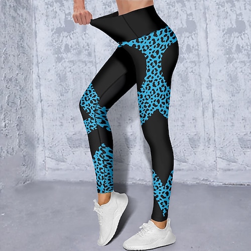Per donna Pantaloni da yoga Sollevamento glutei Controllo addominale Vita Alta Allenamento in Palestra Corsa Fitness Leggings corti Leopardo Geometria Blu pavone Nero Giallo Autunno Inverno Gli sport