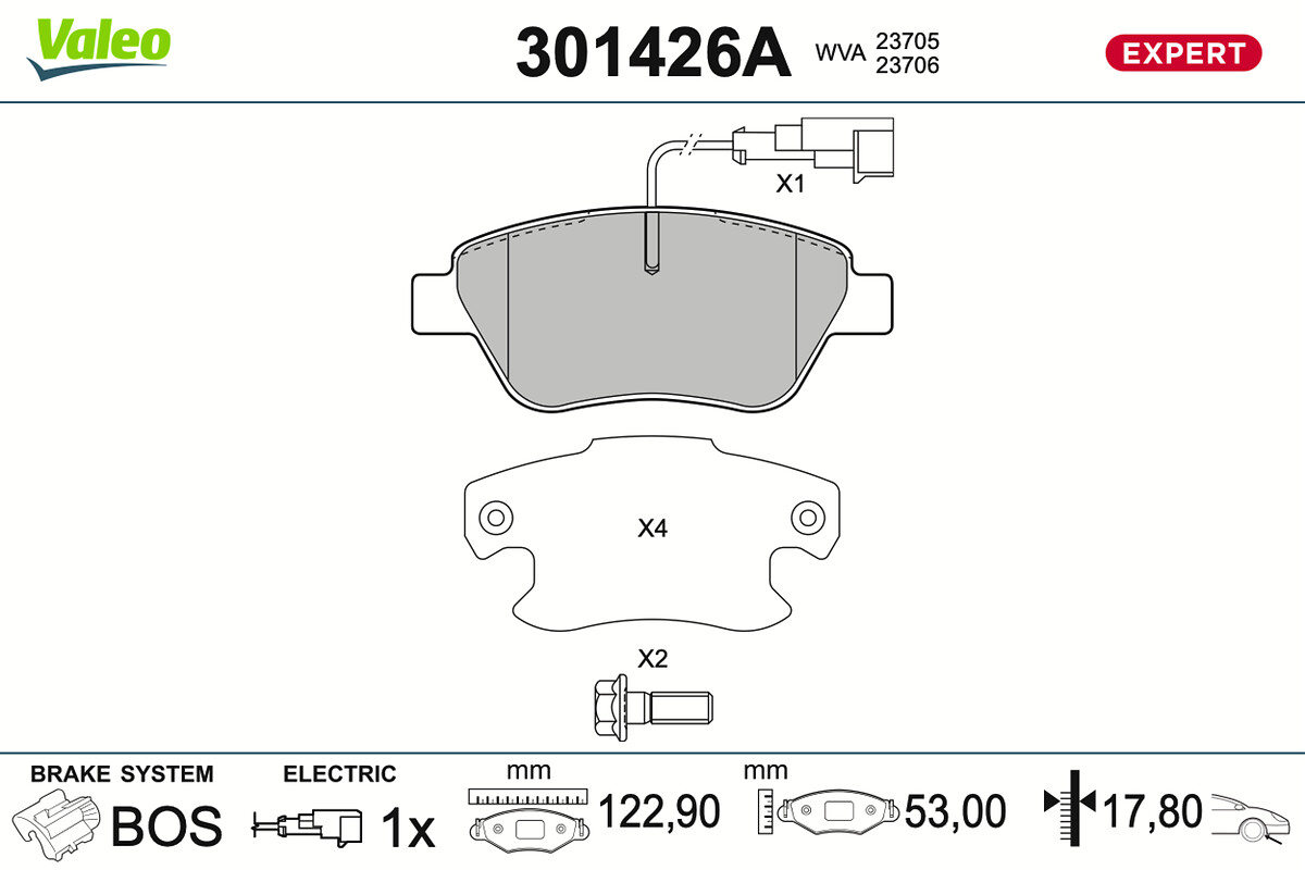 VALEO Bremsbelagsatz, Scheibenbremse 301426A vorne rechts links für ALFA ROMEO PEUGEOT FIAT CITROËN LANCIA ABARTH 77364637 77363942 77364832