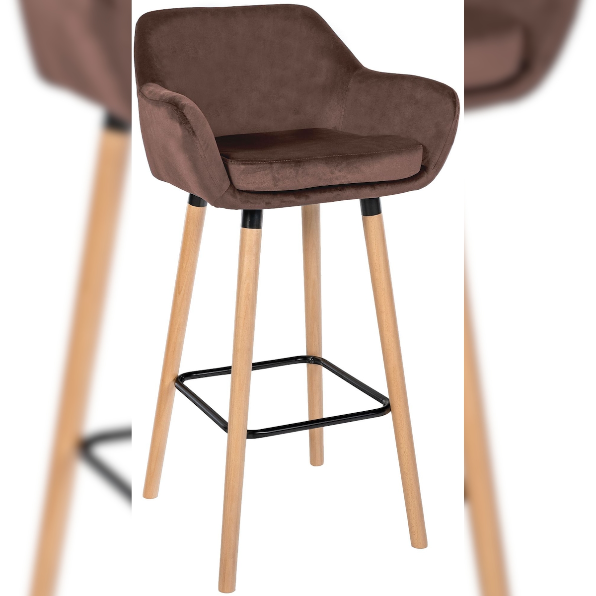 DELUKE Barhocker MIRID - Samt Coffee 55x46x99 cm | Barstuhl Mit Lehne Tresenhocker Tresenstuhl Kneipenhocker Kneipenstuhl