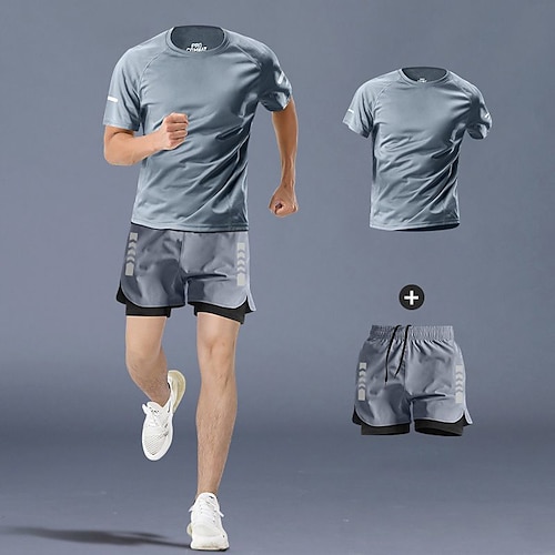 Per uomo Tute da allenamento Set sportivo da 2 pezzi Tinta unita Completo Abbigliamento Estate Grigio scuro Grigio Nero Pallacanestro Corsa Yoga Vita Alta Asciugatura Rapida Manica Corta Sport