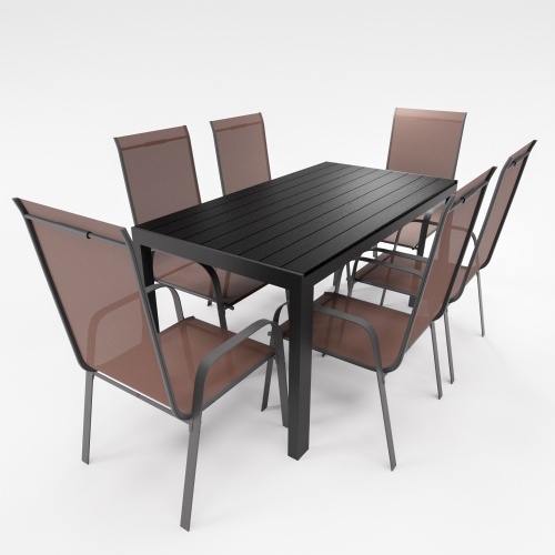 Lex Gartenmöbel Set Alu Tisch 7-tlg. 6x Stapelstuhl Stapelsessel Essgruppe Gartenset Sitzgruppe schokobraun : Schokobraun