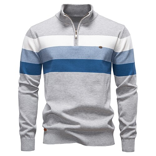 Per uomo Maglione Maglia Top Regolari Mezza cerniera Righe A righe Colletto Mao Vintage Cool Scuola Vacanza Abbigliamento Primavera Autunno Nero Viola S M L