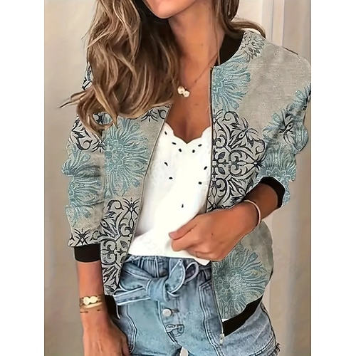 Per donna Giacca Casual Caldo Asciugatura Rapida Cerniera Tasca Elegante Moda Quotidiano Semplice Floreale Vacanza Casuale Quotidiano Ferie Regolare colletto da baseball Vestibilità regolare Manica