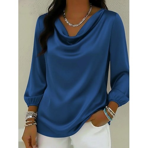 Per donna Camicia Tinta unica Elegante Vintage Essenziale Manica Lunga Scollo a Cascata Top Regolari Quotidiano Blu Giallo Rosso Viola Primavera Autunno Inverno Primavera, Autunno, Inverno, Estate
