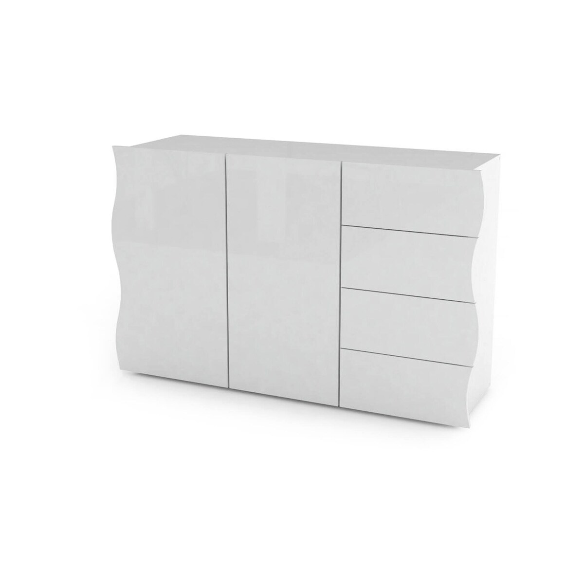 Dmora Kommode Romolo, Küchen-Sideboard mit 2 Türen und 4 Schubladen, Wohnzimmer-Buffet, 100 % Made in Italy, cm 124x40h81, glänzend weiß