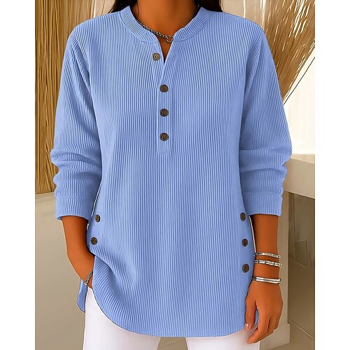Per donna Felpa Maglione Vintage Streetwear Casual Tinta unica Scollo a V Bottoni Lavorato a maglia Manica Lunga Top Regolari Maglia Quotidiano Ferie Uscire Blu Rosso bordeaux Autunno Inverno