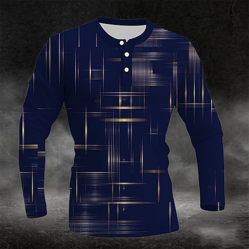 Per uomo Motivo Geometrico Maglia Henley Manica Lunga Moda Carino Quotidiano Casuale Ferie Uscire Primavera Autunno Nero Blu scuro Rosa Verde Blu chiaro Henley Maglietta Henley