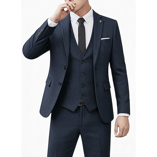 Uomo Matrimonio Affari Completi in Tweed Bavero classico Nero Borgogna Quotidiano Formale Tinta unita Vestibilità su misura 3 pezzi Monopetto Due Bottoni