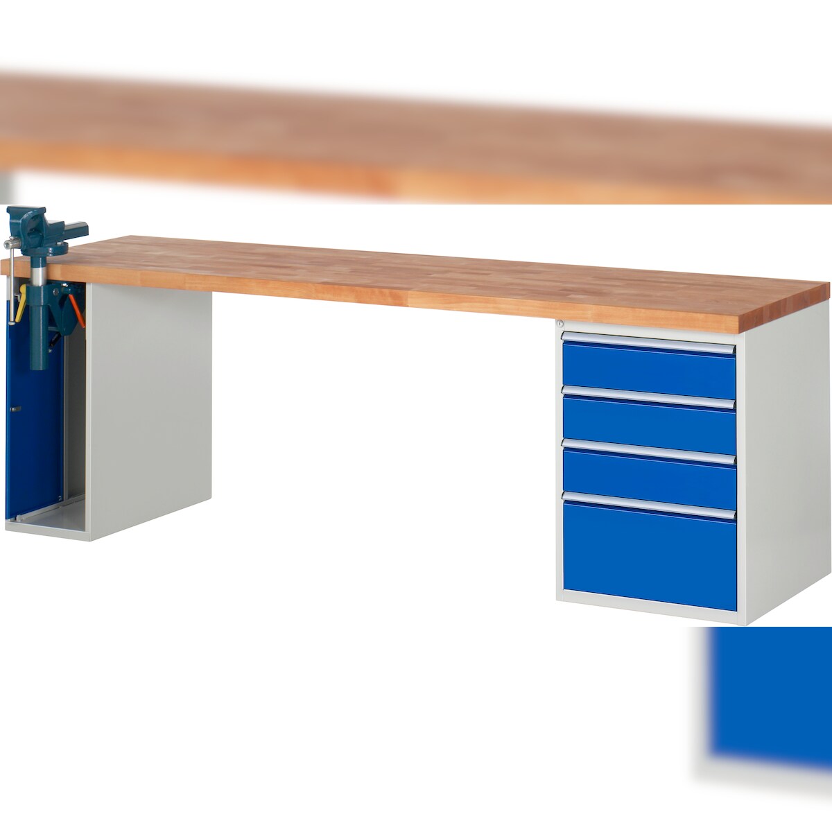 PROREGAL Werkbank Serie 7000 - Modell 7510 | HxBxT 84x250x70cm | 4x Schublade + 1x Schrank inkl. SchPROREGALbstock | Schubladenmaße 3x150 + 1x270mm