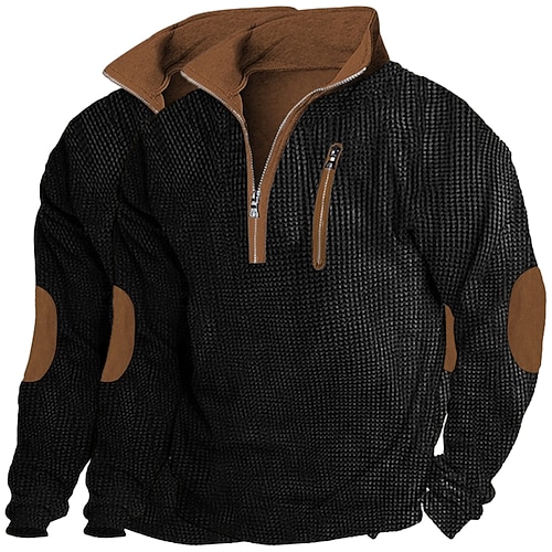Per uomo Maglietta Maglietta a Maglia Waffle Camicia a Maniche Lunghe Manica Lunga Zip a un quarto Inverno Primavera Autunno Blocco di colori Testurizzato Moda Designer Essenziale Patchwork