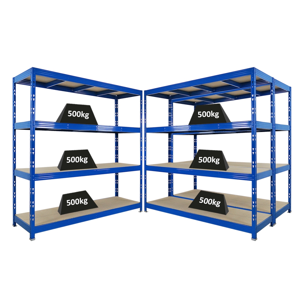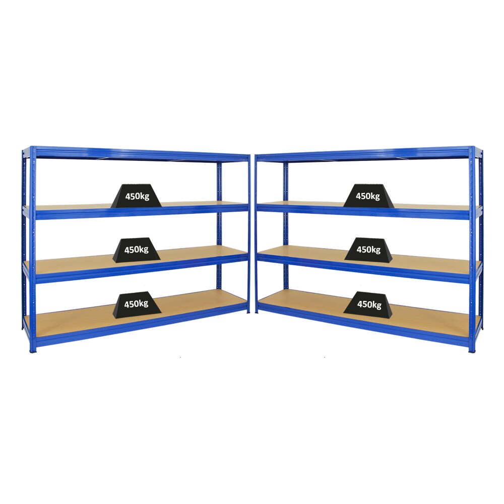 Proregal Mega Deal | 3x Profi Schwerlastregal Rhino | HxBxT 200x200x60cm | 4 Spanplatten-Ebenen 8mm | Fachlast 500kg | Blau