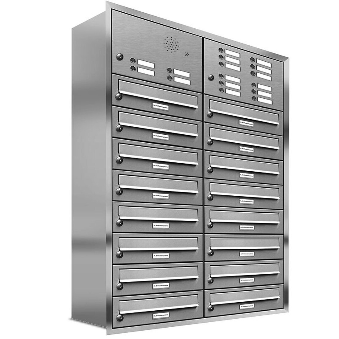 AL Briefkastensysteme 16 Fächer Premium Edelstahl Unterputz Briefkasten Anlage für Post A4, modern, robust, wetterfest, Artikelnummer: 132T16U2KS