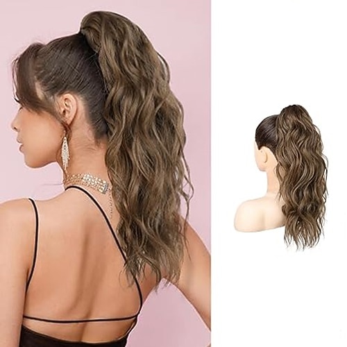 lunghi ricci ondulati coulisse estensioni coda di cavallo clip in ondulati posticci sintetici coda di cavallo con coulisse pezzo di capelli estensione coda di cavallo per le donne biondo cenere 26