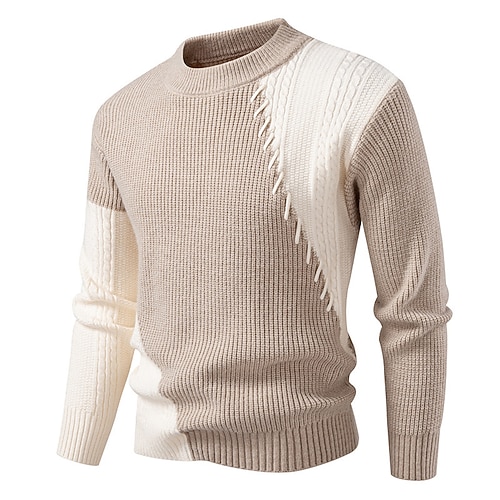 Per uomo Maglione Maglione a maglia A Coste Maglia Top Regolari Lavorato a maglia Blocco di colori Girocollo Moda Essenziale Vacanza Abbigliamento quotidiano Abbigliamento Inverno Cachi Beige S M L