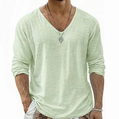 Da uomo Maglietta Camicia a Maniche Lunghe Maglietta in lino Manica Lunga Scollo a V Estate Primavera Primavera Estate Tinta unica Semplice Quotidiano Casual Stile da Strada Puro All'aperto