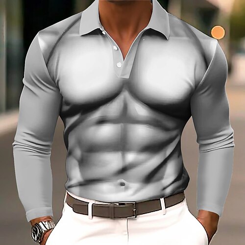 Per uomo Simulazione Polo Manica Lunga Magliette polo Bavero Casual Streetwear Abbigliamento quotidiano Stampa 3D Bottoni Primavera Autunno Inverno Marrone scuro Verde Grigio