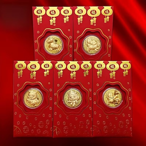 5 monete commemorative dell'anno del cavallo 2026, buste rosse da 100 yuan, sacchetti portafortuna per il capodanno cinese, decorazioni portafortuna culturali adatte per matrimoni e compleanni del