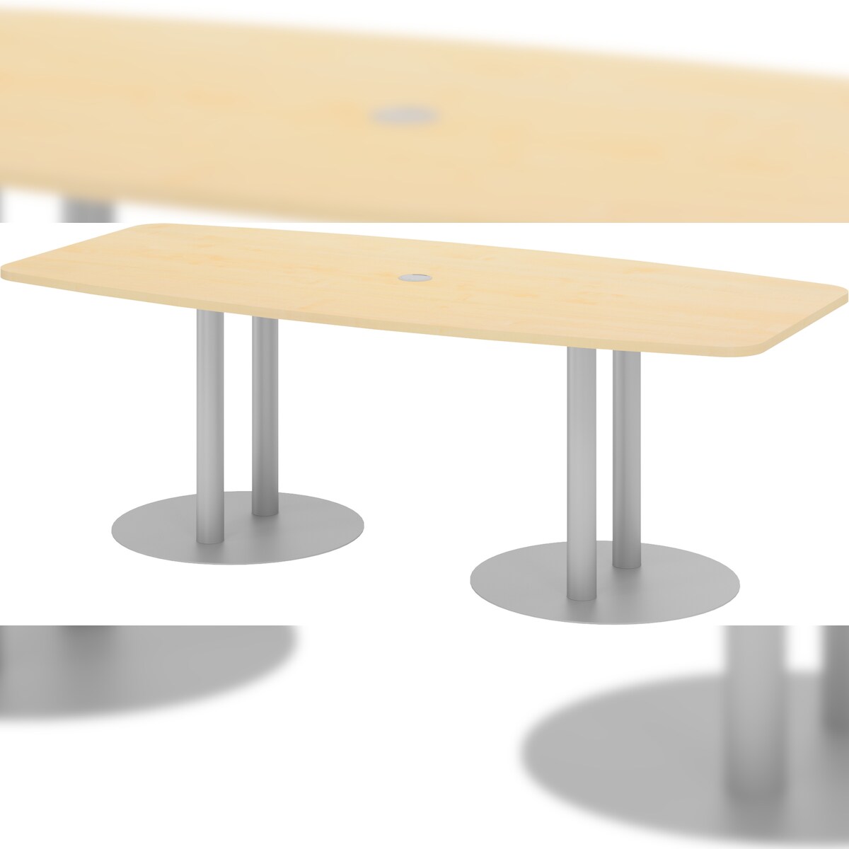 bümö Konferenztisch oval 220x103 cm großer Besprechungstisch in Ahorn, Besprechungstisch mit Säulen in Silber, Meetingtisch für 8 Personen, XL-Tisch