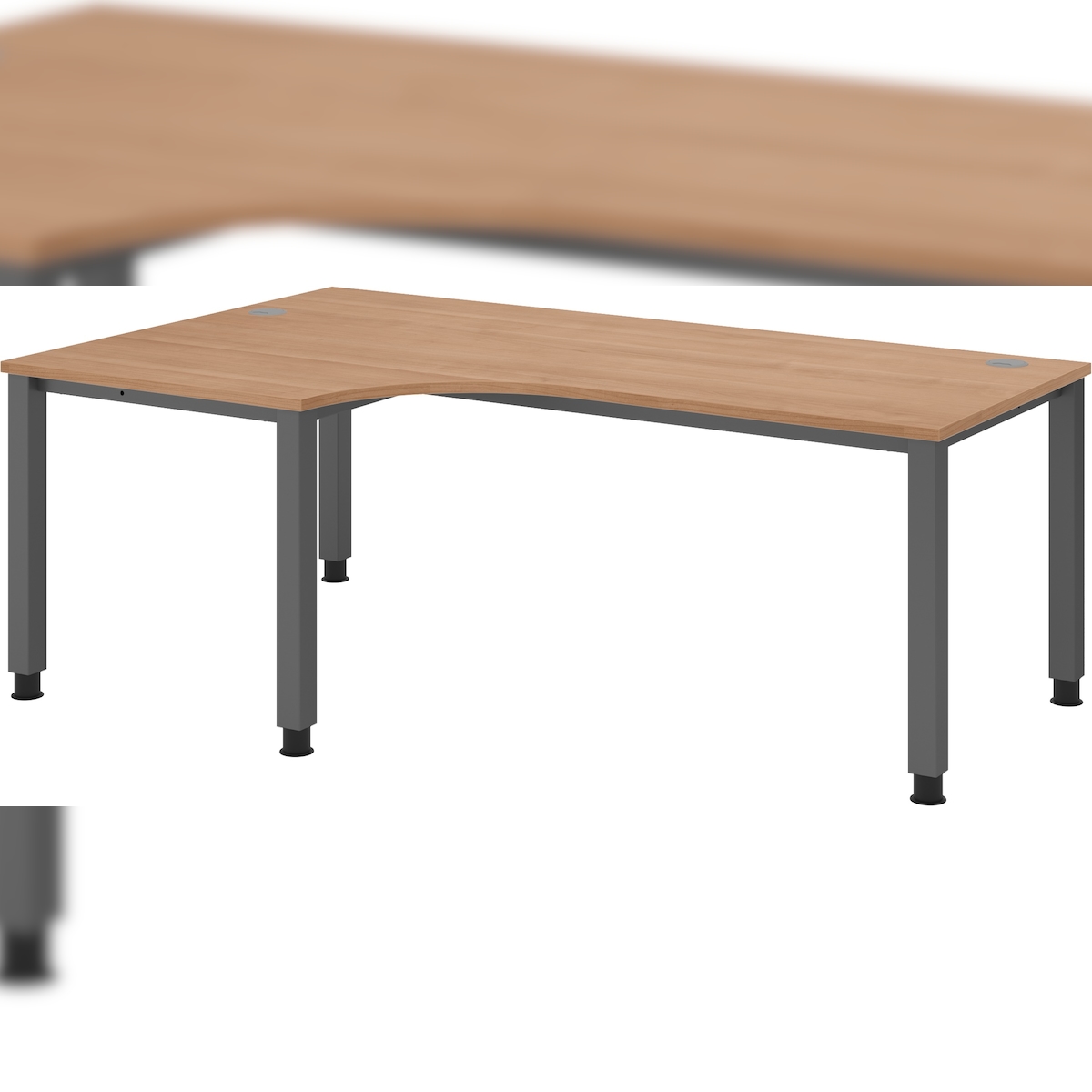 bümö manuell höhenverstellbarer Eckschreibtisch 200x120 cm in Nussbaum, Metall-Gestell: Graphit - PC Tisch höhenverstellbar & belastbar bis 140 kg,