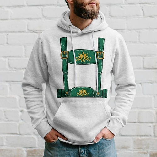 bavarese Monaco Tedesco Manica a Vescovo Felpa con cappuccio Maglione Stampa di Lederhosen Tasca Frontale Grafico per Per uomo Adulti Stampa a caldo per Carnevale Birra Oktoberfest Feste Casual