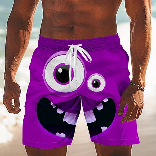 Per uomo Fantasia Cartone 3D Faccia Sorridente Grandi occhi Costumi da bagno Pantaloncini da mare Pantaloncini da Surf Misura del girovita medio Divertente All'aperto Vacanza Abbigliamento