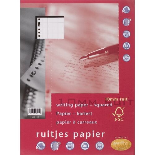 Multo A4 Ringbuch Notizblock Nachfüllung 23-fach gelocht Kariert 10 x 10 mm 50 Blatt