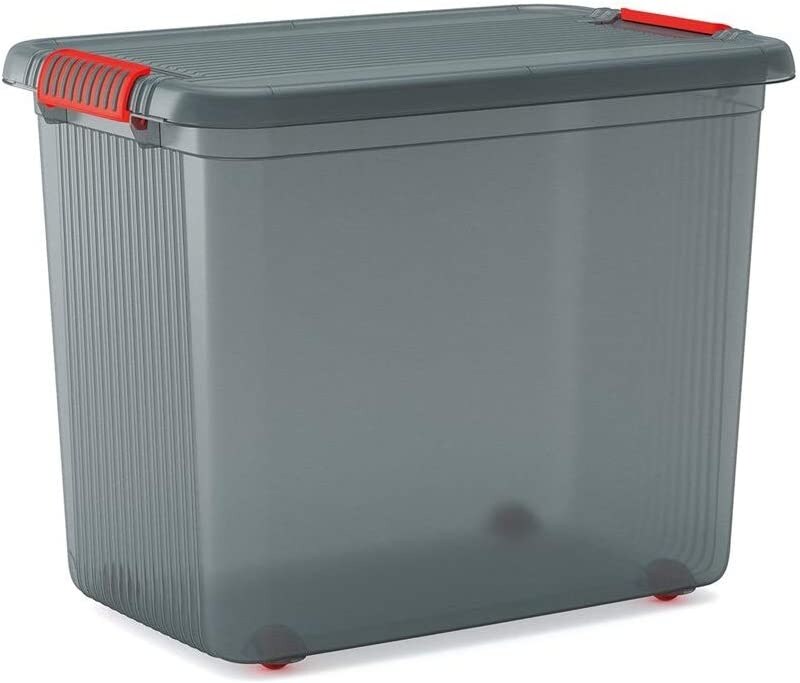 PROREGAL Mega Deal 10x Mehrzweck Aufbewahrungsbehälter MANATEE mit Deckel, HxBxT 45x59x39 cm, 60 Liter, Grau/Orange, Behälter, Box