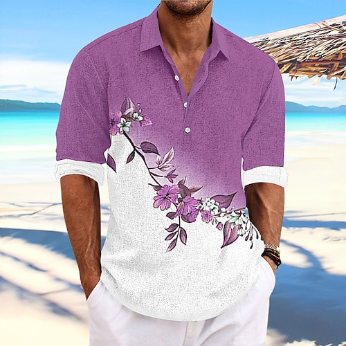 Per uomo Floreale Camicia con bottoni Camicia Henley Manica lunga Hawaiano Ricorrere Esterno Informale Estate Primavera Autunno Collo ripiegabile Rosso Blu Viola