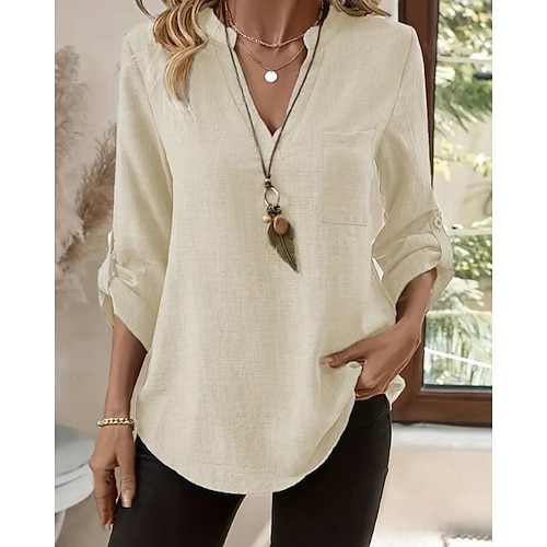 Per donna Blusa Semplice Casual Manica Lunga Scollo a V Top Regolari Quotidiano Ferie Tasca Bottoni Blu Giallo Viola Verde Cachi Estate Primavera