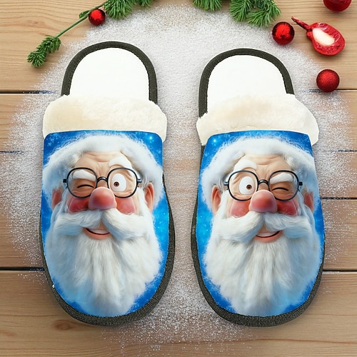 pantofole natalizie da donna a forma di Babbo Natale - design con allegro volto di Babbo Natale e interno in peluche, ultra comode, ideali per rilassarsi a casa, la vigilia di Natale e le riunioni festive