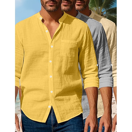 Per uomo Camicia di lino Camicia popover Camicia casual Camicia con colletto alla coreana Semplice Vacanza Crociera Nero Bianco Rosa Blu marino Manica Lunga Colletto Primavera Estate Abbigliamento